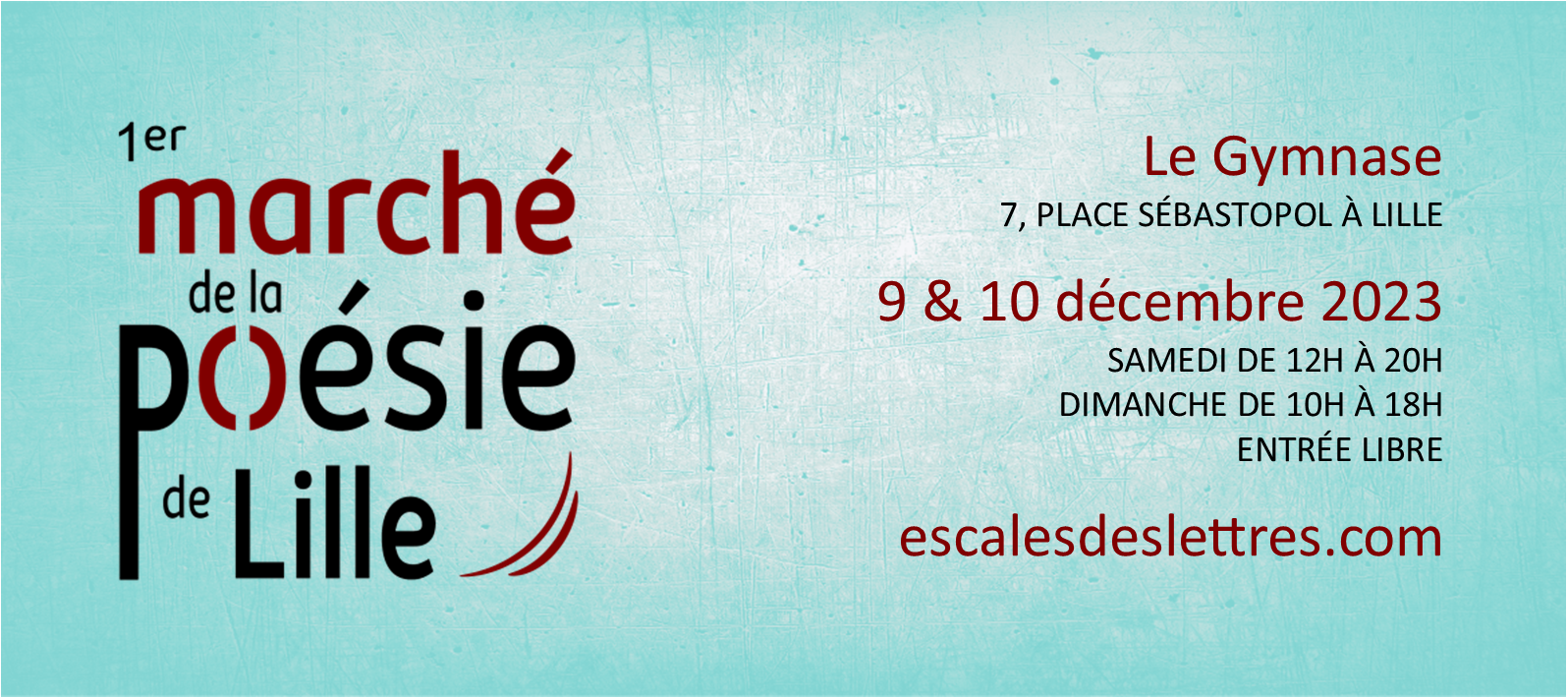 Plus de 200 maisons d’édition, revues et poètes vous donnent rendez-vous dans la salle du Gymnase, au cœur de Lille, les samedi 9 et dimanche 10 décembre 2023 pour prendre part aux festivités d’un week-end qui mettra à l’honneur une poésie plus que jamais vivante.
