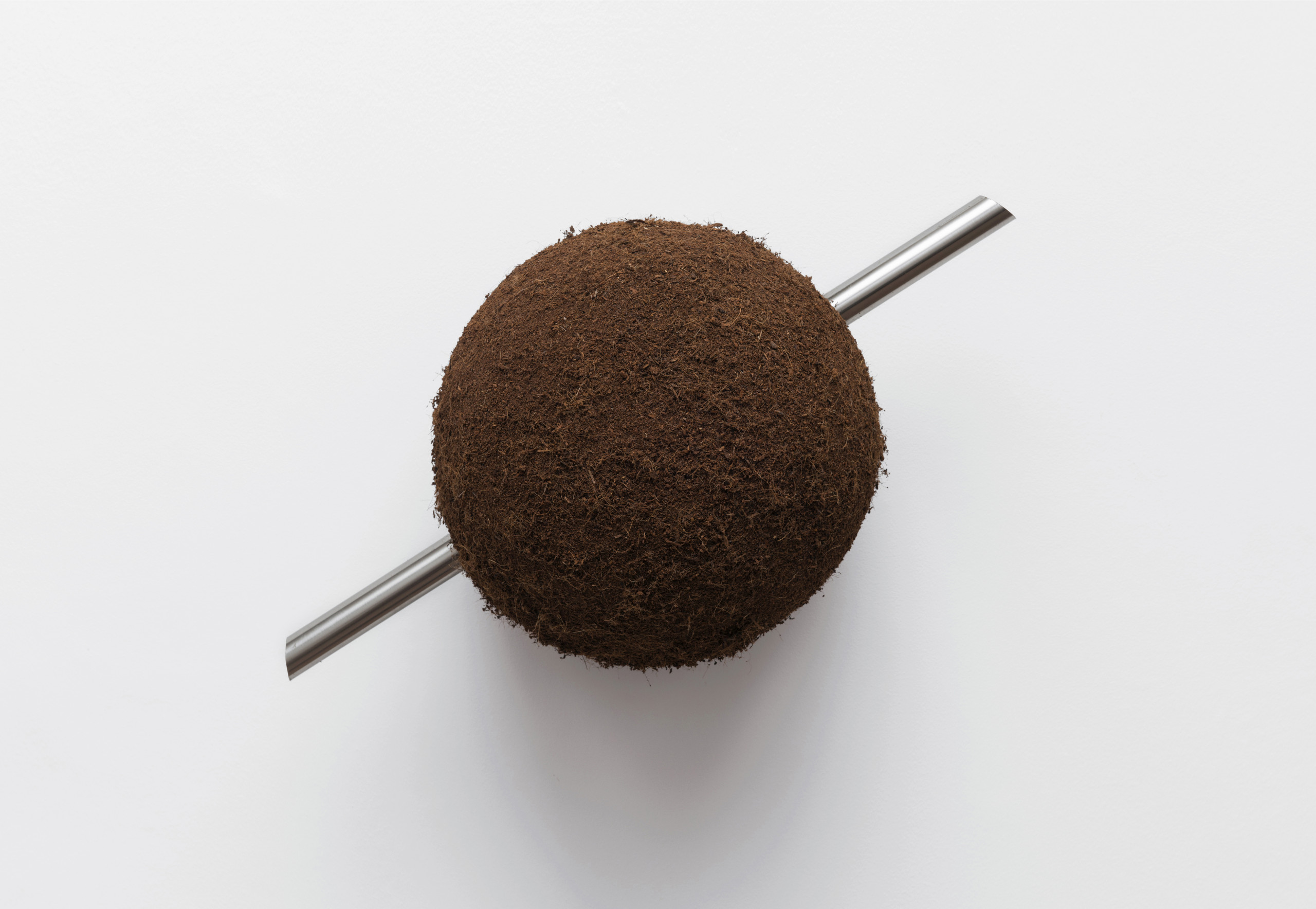 Un titre d’œuvre attire l’attention — car les titres, par leur pouvoir linguistique, font partie intégrante de l’œuvre : Négociation 43 - Activité des obliques (2011). Il s’agit d’une planète, recouverte de tourbe de coco, traversée par un tube de métal oblique. Faisons l’hypothèse que cette sphère ne serait autre qu’un globe, l’oblique le traversant en deviendrait une sorte de gouvernail, rendant possible une prise en main de la planète, pour une potentielle activation. Caroline Le Méhauté précise alors : « ce n’est jamais par l’horizontalité ou la verticalité que l’on peut faire évoluer une situation : c’est toujours à l’oblique, par les chemins de traverse, que l’on peut rendre un élément véritablement actif ». Le biais deviendrait donc remède, style de négociation avec l’horizon, et avec les lignes toujours trop droites qui nous conditionnent.