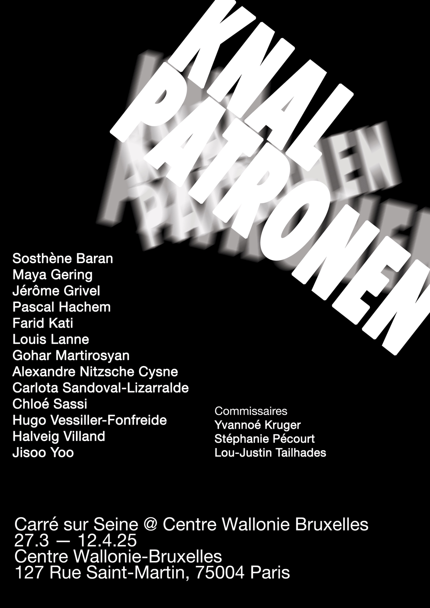 Du 27 mars au 12 avril 2025, le Centre Wallonie-Bruxelles à Paris aka le vaisseau devient le théâtre de KnalPatronen | CSS @CWB, une exposition qui réunit les dix artistes finalistes du Prix Carré sur Seine 2024, ainsi que les trois lauréates du Prix Carré sur Seine | Résidence Nexity Héritage 2024.