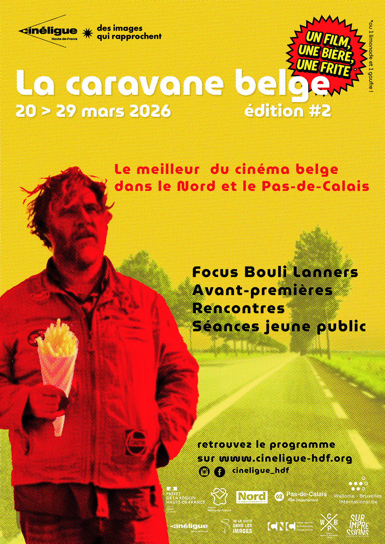 La Ciné-Ligue des Hauts de France, avec le soutien de Wallonie-Bruxelles International, le Centre Wallonie-Bruxelles/Paris, le Ramdam Festival et en partenariat avec la Revue belge de cinéma Surimpressions présente la deuxième édition de La Caravane belge, programmation de films belges francophones, du 20 au 29 mars, dans plusieurs villes des Hauts-de-France.