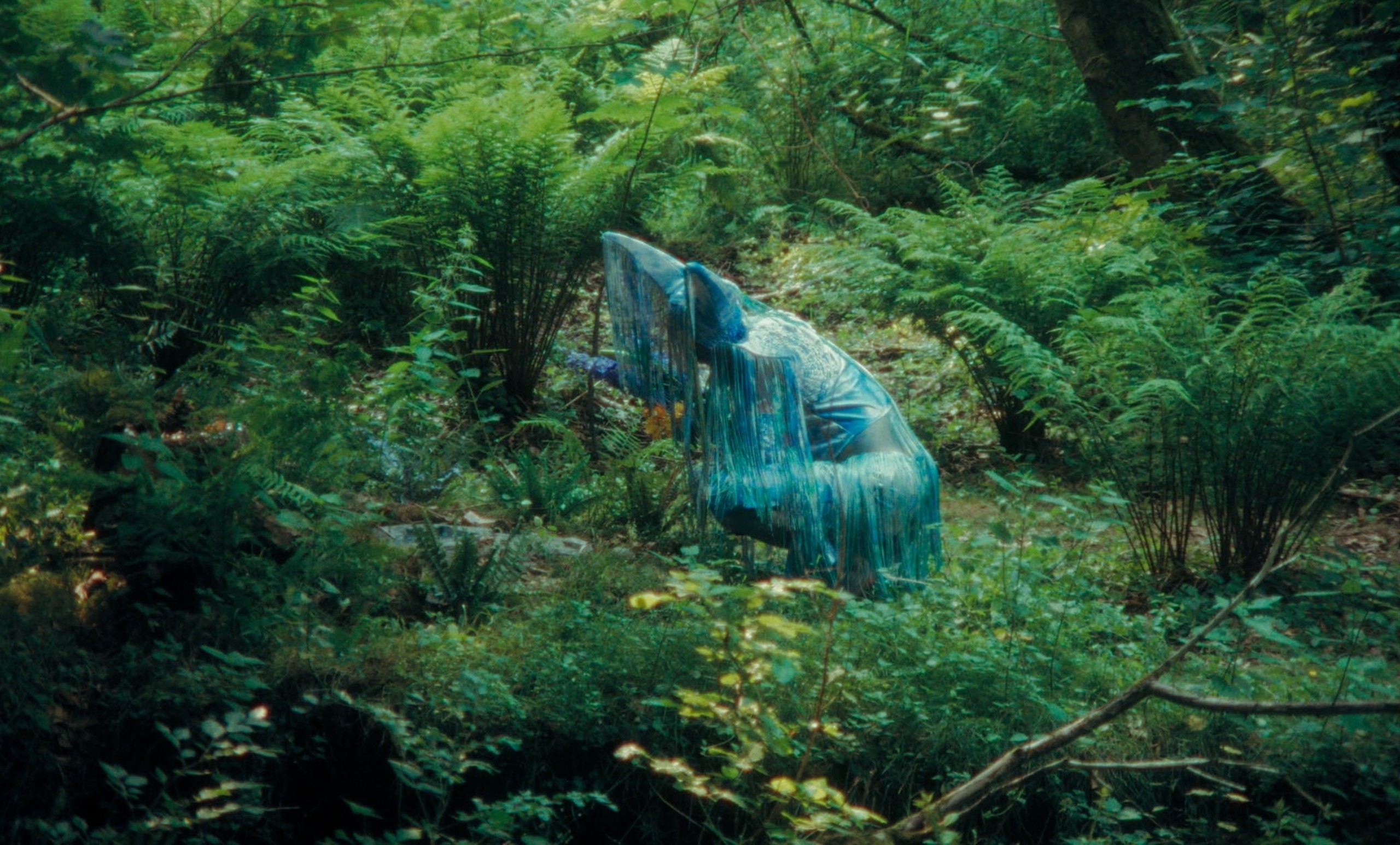 Sous les arbres, Alzou retrouve un ancien espace cérémoniel presque englouti, où le paysage lui-même semble avoir continué à porter la mémoire. Un rituel commence : iel dépose des fleurs, ingère