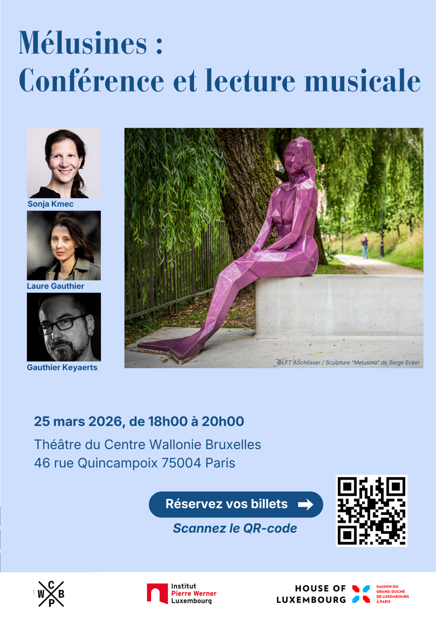 Cet évènement s’inscrit dans une mini-tournée inédite organisée conjointement avec la MGDL à Bruxelles, l’Institut Pierre Werner à Luxembourg et le Centre Wallonie Bruxelles / Paris.